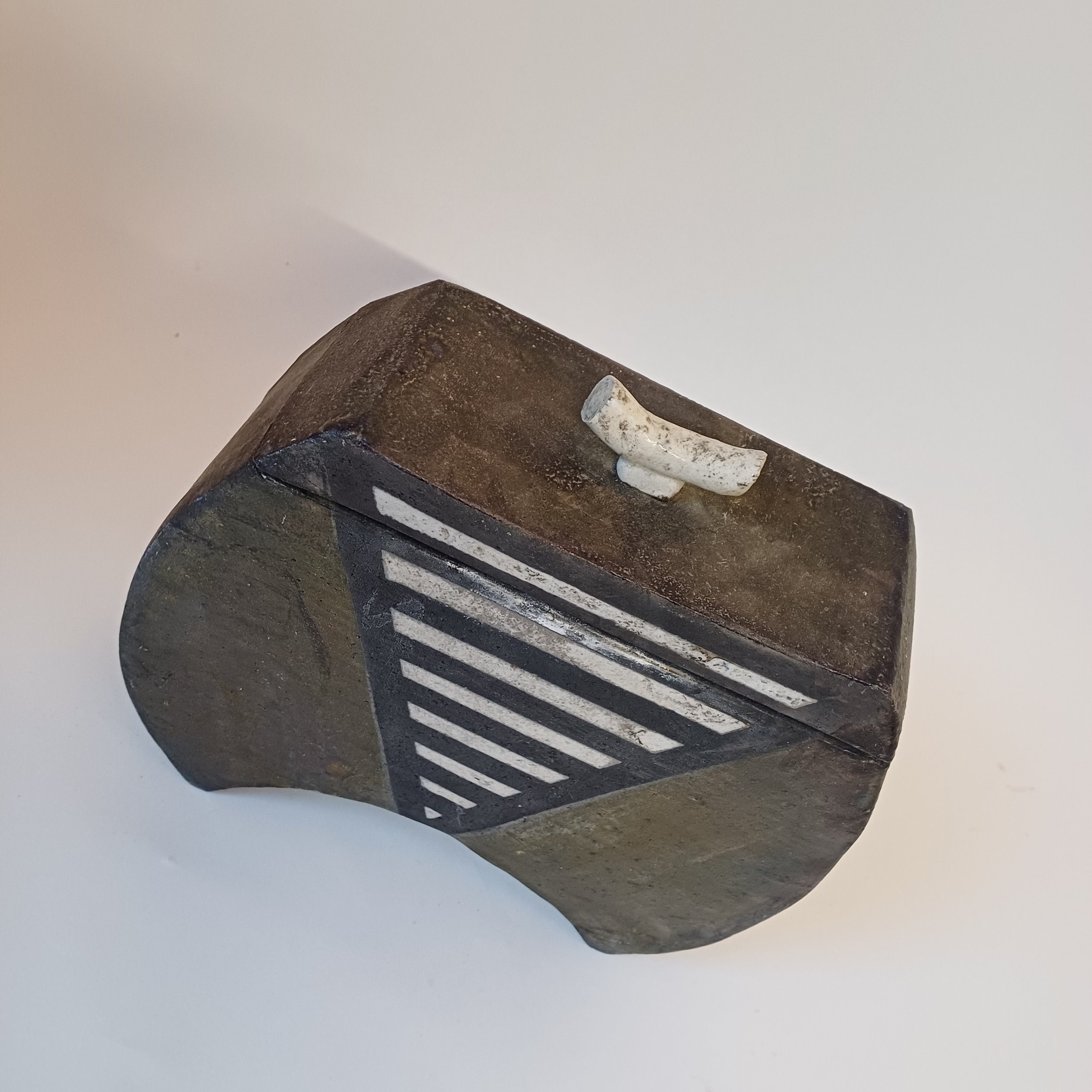 A fantastic c20th design by the ceramicist Ria Meloche. Ria studied and worked in Canada. This studio piece, made using the Japanese Raku technique, combines shape and pattern beautifully. Good condition, with no cracks or chips.